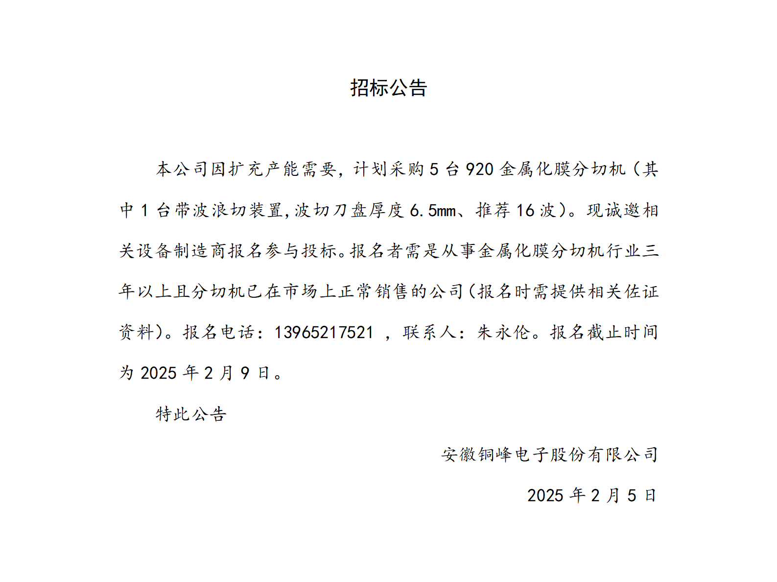 招標(biāo)公告(分切機)