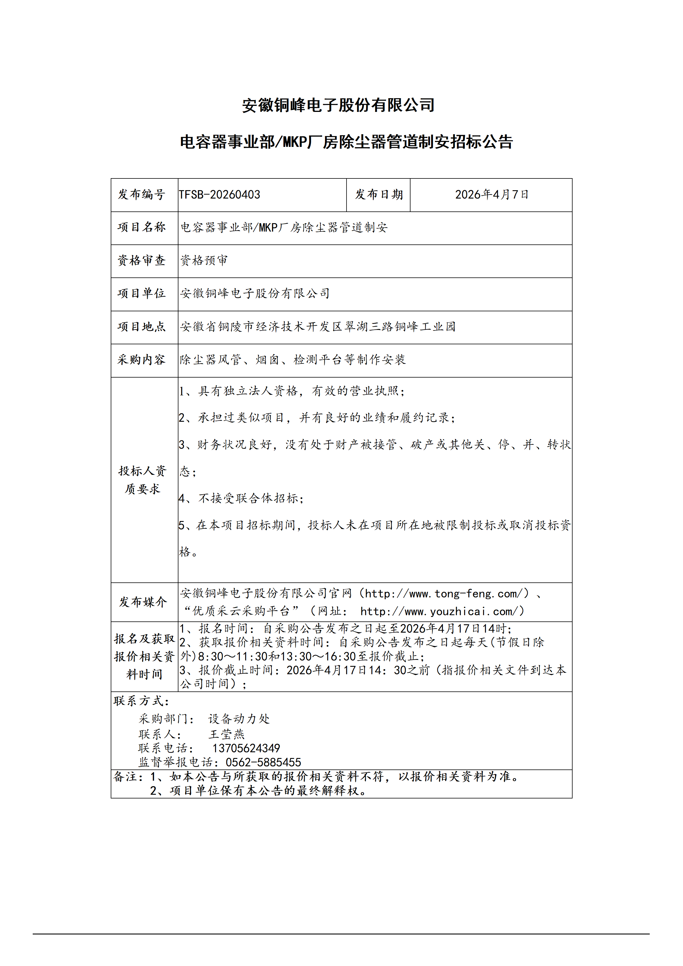 01-安徽銅峰電子股份有限公司 (銅愛廠房西側(cè)道路改造-- 招標(biāo)公告)_01