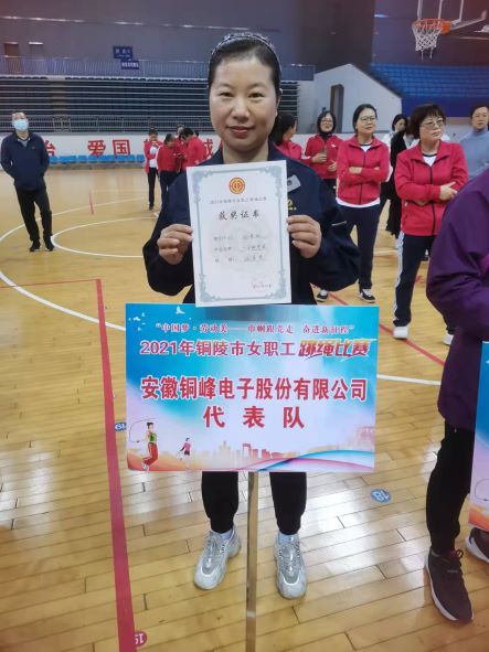 全市女職工跳繩比賽由市總工會(huì)主辦,共有全市工會(huì)系統(tǒng)35個(gè)單位組隊(duì)參賽,222名女職工、22支隊(duì)伍分別報(bào)名參加單人項(xiàng)目和集體項(xiàng)目比賽。公司工會(huì)選派了2名優(yōu)秀女職工選手參加了單人項(xiàng)目。經(jīng)過參賽選手奮勇拼搏,最終電容器分公司孫艷紅以一分鐘單搖201個(gè)的好成績?cè)谌?22名參賽選手中排名第11名,榮獲“優(yōu)秀獎(jiǎng)”。