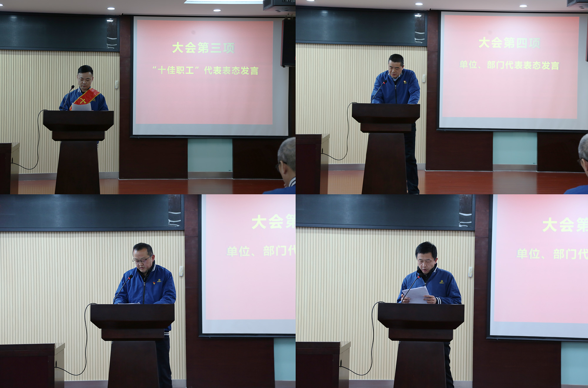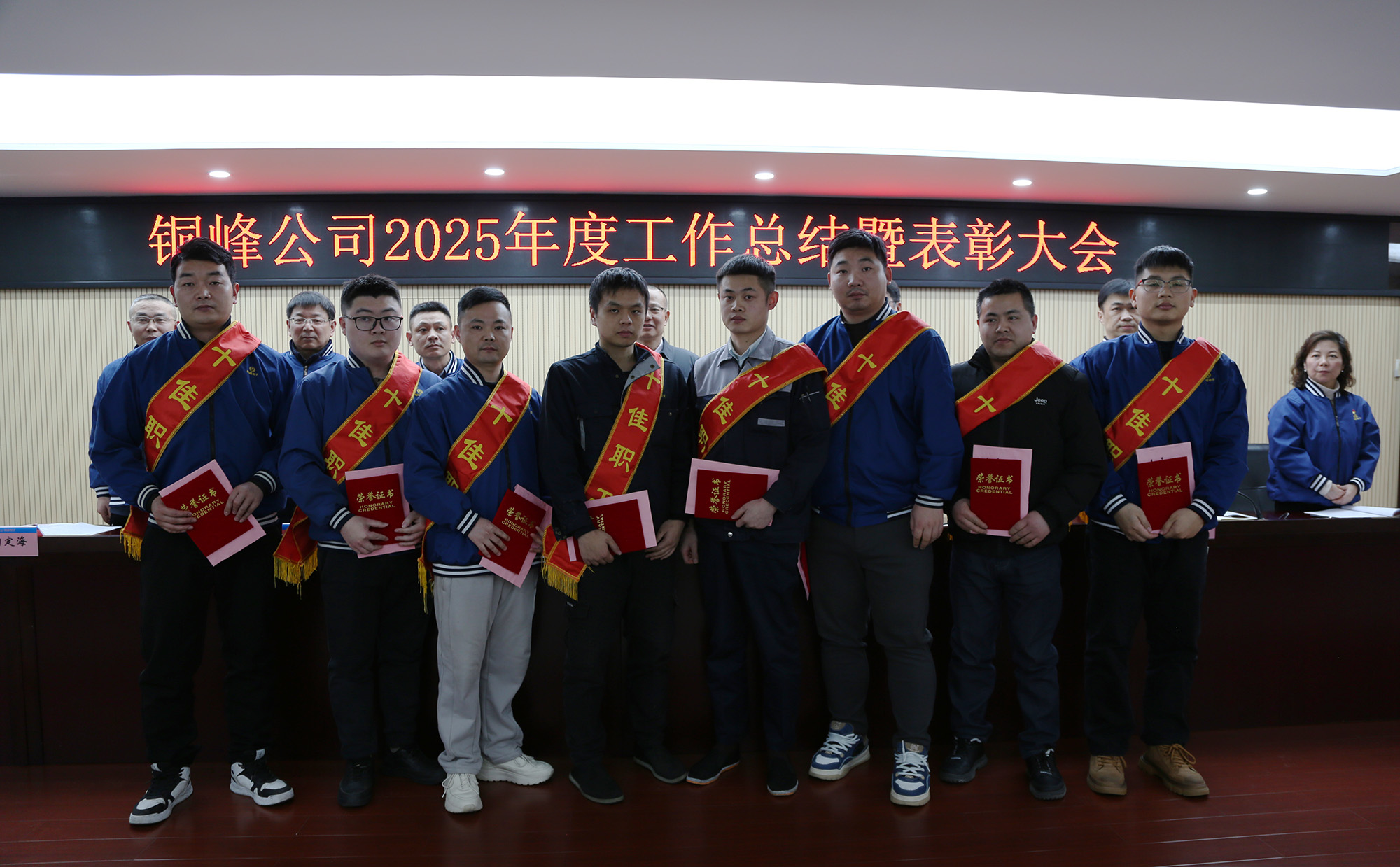 與會(huì)領(lǐng)導(dǎo)為受表彰的2025年度公司“十佳職工”頒發(fā)榮譽(yù)證書及獎(jiǎng)金?!笆崖毠ぁ薄⒔?jīng)營(yíng)單位和職能部門代表分別作表態(tài)發(fā)言。